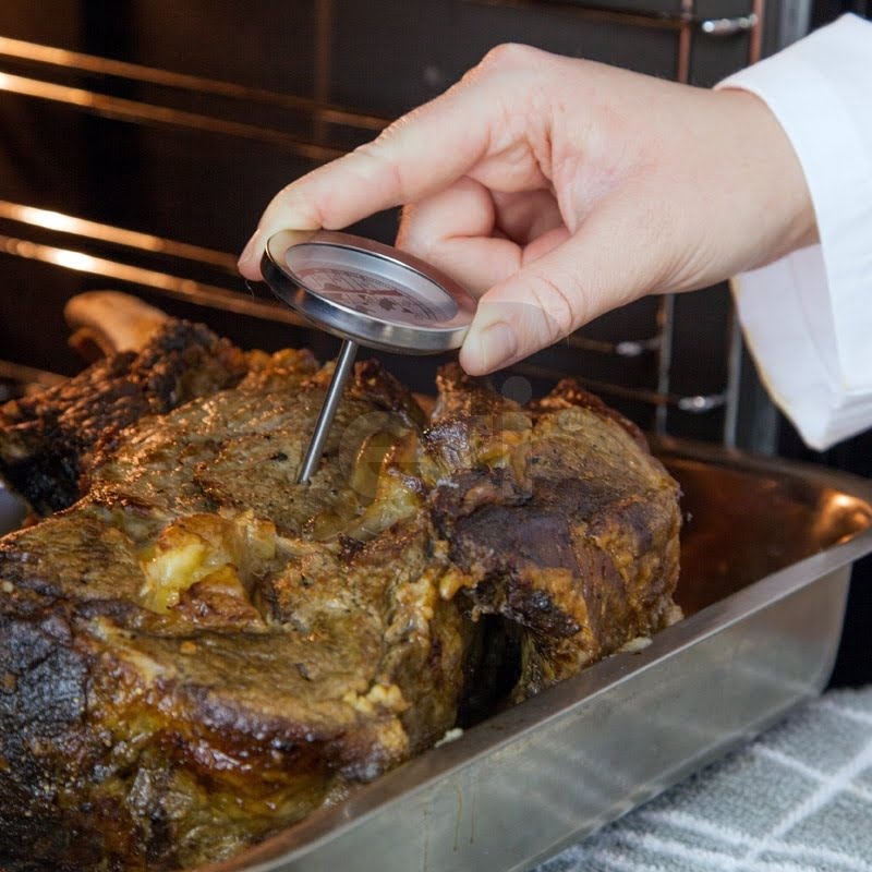 This meat thermometer features a large Ø60mm dial with a Ø5 x 102mm stainless steel pointed probe. The thermometer indicates temperature over the range of 20 to 100°C in 2°C divisions and provides an economical and relable means to ensure your meat and roasts are properly and safely cooked.